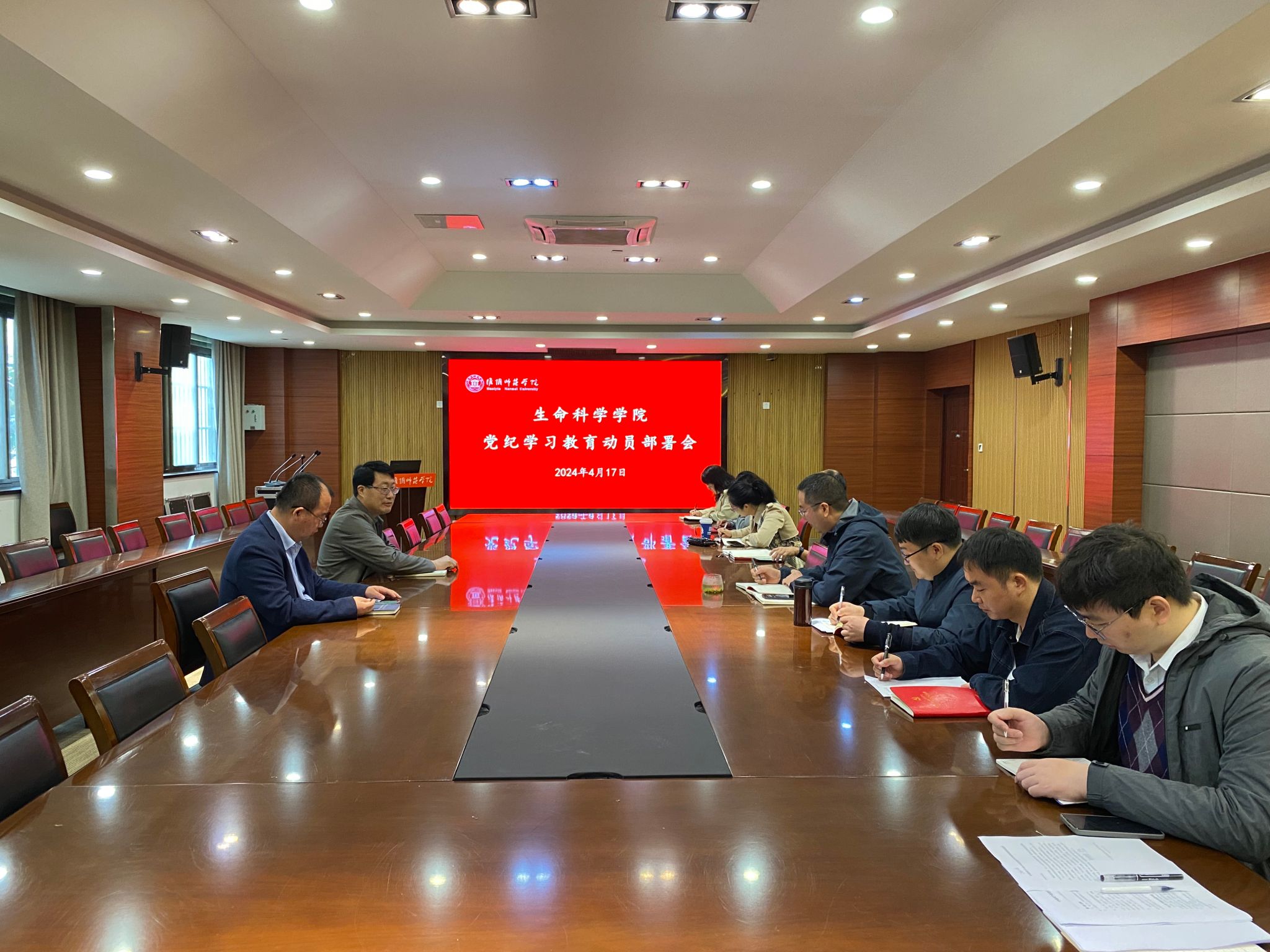 为深入学习习近平总书记关于党纪学习教育的重要讲话和重要指示精神,落实学校党委关于党纪学习教育要求。4月17日下午,生科院党委在生科楼202会议室召开党纪学习教育动员部署会,会议由学院党委书记殷占兵主持,学院中心组全体成员参与会议。