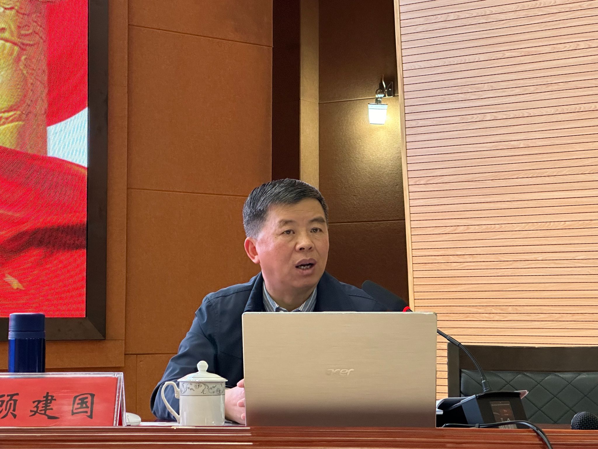 图为顾建国作党纪学习教育专题讲座 记者 周华润 摄