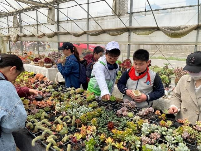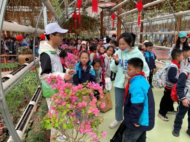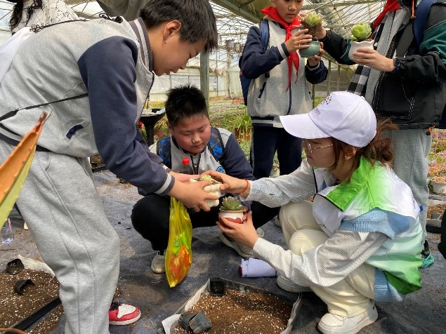 活动中,志愿者们带领小学生们参观美丽的花趣园,认识了许多常见的花卉,学习花卉的生活习性和辨认方法。然后,志愿者们给小学生们分发多肉植物和小花盆,指导他们完成了多肉植物的栽培,在过程中体验实践的乐趣。
