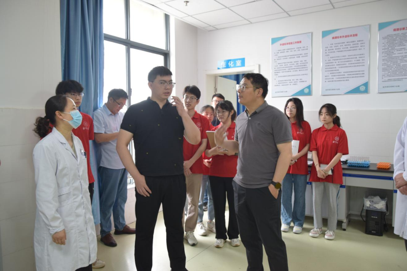 在徐杨卫生院,实践团成员参观了检验科,与医护人员进行了讨论,学习基层医疗在呼吸道感染诊断中的应用和挑战,强化了自身对公共卫生实践的认识和责任感。指导老师相欣然也对当前市场上呼吸道快速诊断的问题进行了讲解,进一步加深了学生们的理解。