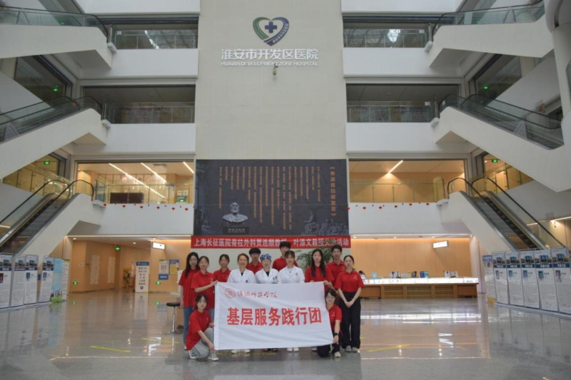 图为实践团队与淮安市开发区医院一线工作者合影。记者 薛茜文摄