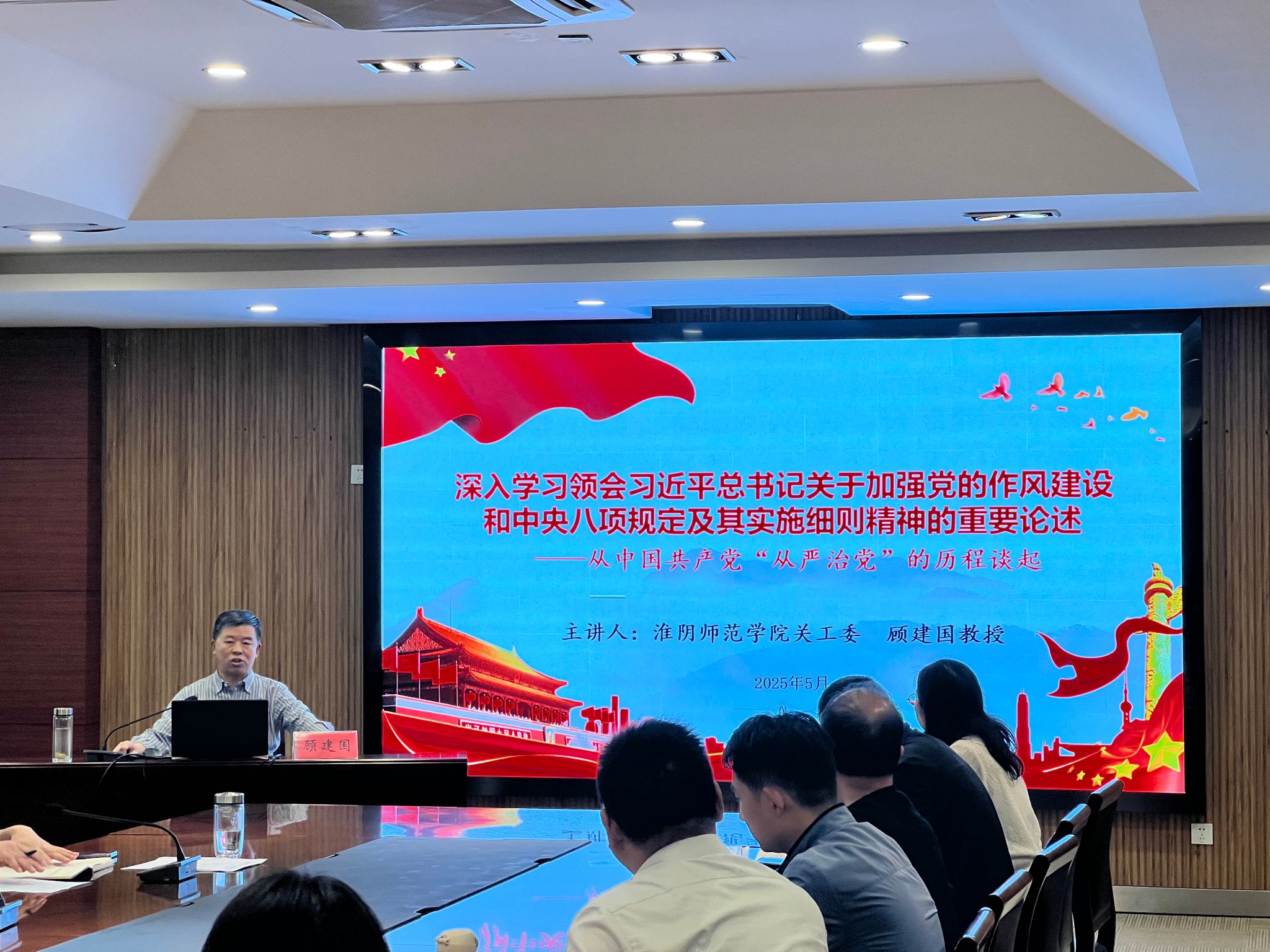 殷占兵在主持会议时指出,顾建国教授的报告视野开阔、观点鲜明、内涵丰富,具有很强的思想性和针对性,对全院党员干部深刻理解加强党的作风建设的重大意义、准确把握中央八项规定及其实施细则精神的丰富内涵和实践要求,切实提高党性修养、强化规矩意识具有重要的指导意义。他强调,作风建设永远在路上,全院党员干部要聚焦主题,深学细悟筑牢思想根基,将学习习近平总书记关于加强党的作风建设重要论述和中央八项规定及其实施细则精神贯穿学习教育全过程,不断增强抓好作风建设的思想自觉与行动自觉,推动学习教育见行见效。同时,要坚持知行合一,把学习成果转化为推动实际工作的强大动力,充分发挥党员先锋模范作用,以优良党风引领教风、学风建设,营造风清气正的校园生态,全力推动学院高质量发展,确保年度各项目标任务圆满完成。