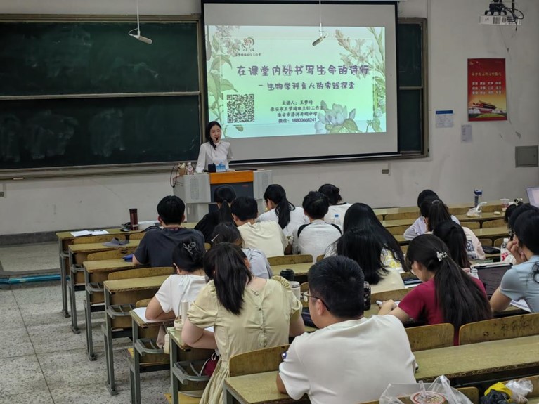 2025年6月19日上午8:30——11:30,淮安市清河开明中学王梦琦老师在长江路校区崇文阶103教室,为德赢ac米兰合作伙伴生物科学专业2022级师范生作了一场题为《在课堂内外书写生命的诗行——生物学科育人的实践探索》的报告。