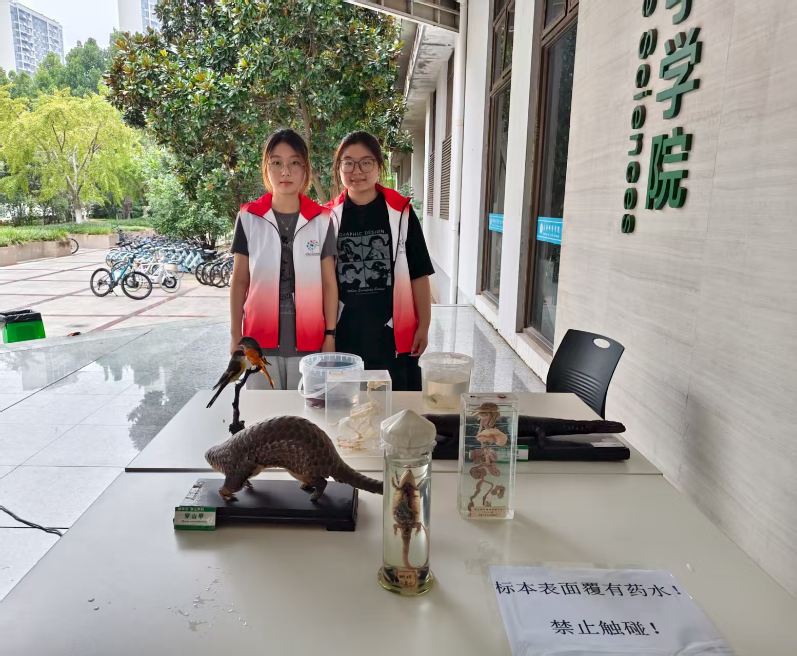 本次迎新融合生科特色,学院特别设置迎新生态角,陈列多种动物标本、洪泽湖转基因经济鱼类实物,并搭建微型水稻田农业生态场景,生动展示现代生物科技在生态保护与农业发展中的前沿应用,吸引众多新生驻足体验。通过志愿者耐心讲解,新生们得以直观感受生命科学的魅力。现场还设有签名合影墙和拍照打卡点,志愿者们主动为新生和家长们拍摄合影,记录下一张张洋溢着期待与喜悦的笑脸。