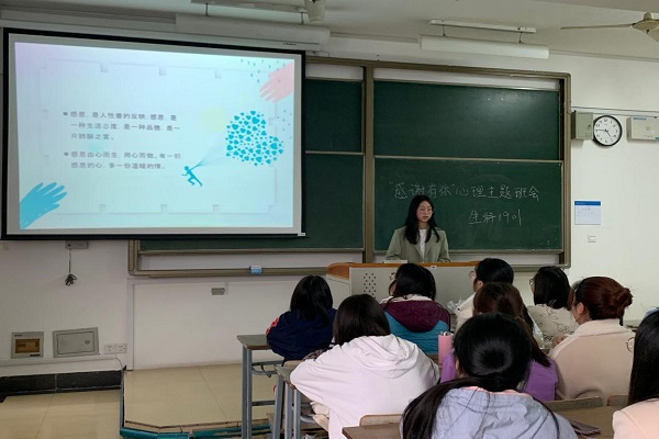 4月9日下午,生科1901班全体同学利用课余时间在晚自习教室举行了心理主题班会。班会由心理委员吴梦倩主持。班会旨在引导每位同学常怀感恩之心,用心感受生命和生活之美好,积极分享身边感动自己的事迹,动员学生做出感恩行动。