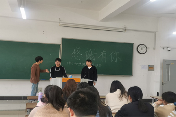 为了引导同学们时刻以一颗感恩之心对待身边的人和身边的事,以一颗感恩的心回报社会。生科1905班在4月9日下午于弘文楼1-115举行以“感谢有你”为主题的心理健康教育班会。