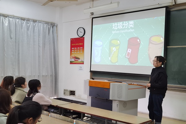 首先由主持人播放了一段垃圾分类VCR,带领同学们学习古人的垃圾分类方式。垃圾分类是一种资源的再利用,资源不是取之不尽用之不竭的,只有合理有效地使用,我们才能持续发展。接着,主持人组织大家进行环保知识抢答游戏,由主持人说出生活中常见的几种垃圾,同学们抢答归为哪类。最后,本次团日活动在《垃圾分类歌》中结束。
