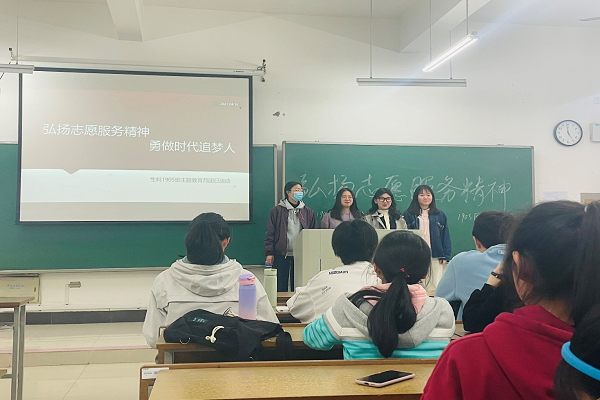 在本次团日活动中,团支书向同学们展示PPT,带同学们学习四史知识:党史、新中国史、改革开放史、社会主义发展学习史,尤其在今年一个特殊的纪念日,我们重点学习了党史。随后团支部的两个委员以及两位作为发展对象的班委上台讲话,激励呼吁大家积极成为发展对象、积极入党。最后班级几位在寒假期间做过志愿者的同学上台讲话,向班级同学分享自己志愿者期间的事迹,让班级同学对志愿服务产生兴趣,让大家都投身到志愿服务事业中去。