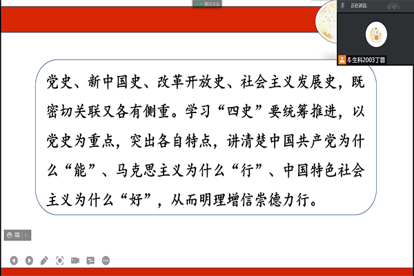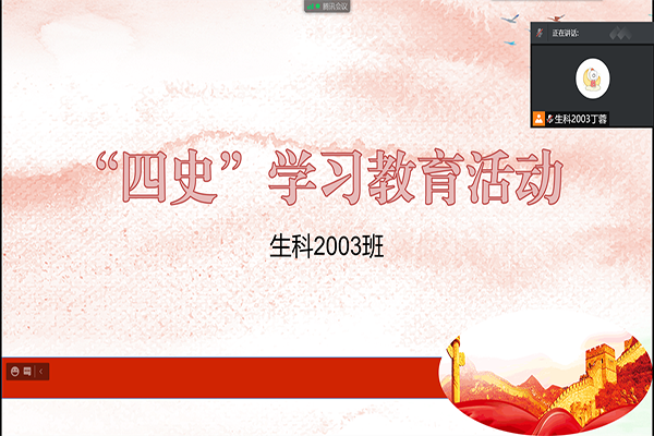 德赢ac米兰合作伙伴2003班于10月23日举办了线上四史的学习教育活动。首先先同大家讲述了什么是四史。