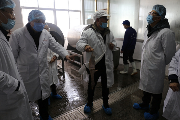 随后,支部党员来到淮安市宝升源禽业有限公司开展“两同两在”建新功行动。全体党员详细了解了企业发展历程、企业文化、企业经营等方面的情况,重点参观了李怪厨苏鸭的制作工艺流程,深切感受到了企业严谨的管理制度和员工认真的工作作风。学院张曈副院长与宝升源禽业有限公司董事长李玉保签订了《合作协议书》,并正式挂牌“淮阴师范学院就业实习基地”。党员与李董事长深入探讨了企业在产品研发及质量控制等方面遇到的技术难题,形成了针对产品防腐技术攻关、产品有效成分分析及保健功效研发等方面的技术指导合作意向。