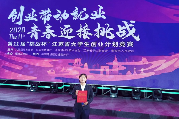 她的努力与拼搏,让其在各项成绩中都跻身专业前列,获国家奖学金、国家励志奖学金、江苏省境外学习政府奖学金、校一等优秀奖学金6次等多项奖学金荣誉,稳居班级第一。在保持班级成绩第一的同时,一次性通过计算机二级及全国英语四六级,还获得国际人才英语考试初级证书,进一步提升英语综合能力。