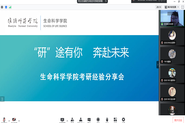 为引导学院学生树立正确考研目标,进一步推进学院考研工作高质量发展。生科院2022年考研经验分享会于5月8日以线上会议形式举行。分享会由辅导员李小团主持,2018级7位优秀毕业生和全体2019级学生参加会议。
