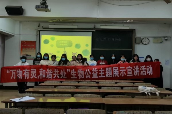 为启发和调动同学们对保护生物多样性的认识,感受和认识到保护生物多样性的意义和重要价值。11月16日,绿之源环保协会在学校崇文楼开展“万物有灵,和谐共处”主题活动。