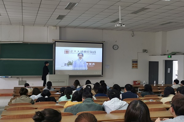 宣讲会开始前,李小团老师向正大天晴和锦乔生技两大企业表示热烈欢迎。随后由正大天晴企业招聘经理先开始宣讲,通过正大天晴企业宣传片向我们展示了企业成长与发展,以及现今规模等,并且结合PPT对相应的岗位进行了详细讲解。负责人并根据自身工作经验为同学们进行了就业指导。