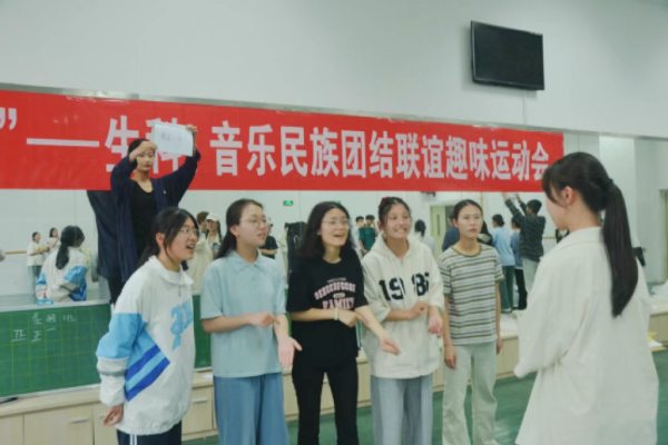 为促进民族团结,增强各民族青年团队合作意识,5月24日下午,我院与音乐学院联合在音实楼105教室举办“悦分享正青春”民族团结联谊趣味运动会,邀请两院30余名少数民族和汉族同学代表参加了活动。