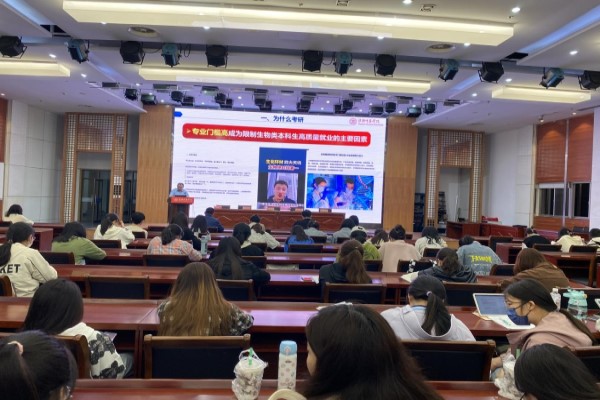 刘廷武做总结讲话。他从“为什么考研”、“如何做选择”、“坚持即胜利”三方面展开,结合当前生物产业发展形势,指出专业门槛高成为限制生物类本科生高质量就业的主要因素,从而指出本专业考研的重要性,引导同学们要先明确自身的目标,然后根据自身能力、喜好选择合适的院校,号召同学们在考研中努力提升自身能力,实现个人理想价值,以梦为马,不负韶华!
