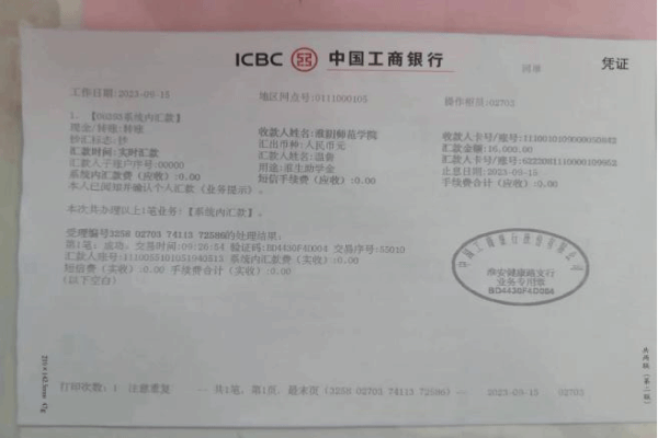 捐资助学 大爱无疆 ——生科院“淮生助学金”到账