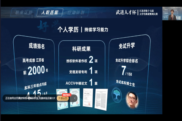 这场观影活动重点展示了往届举行的全国职业规划大赛中获奖的优秀作品。视频内容涵盖了不同专业领域的就业趋势、职业规划策略以及成功的职业案例等,比如东南大学获奖同学的人工智能梦,南航的口译,南师的戏曲等,为学生们提供了广阔的视野和宝贵的经验借鉴。