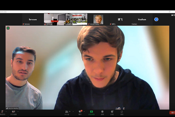图为Stephen Kelley教授线上授课 记者 周润华 摄